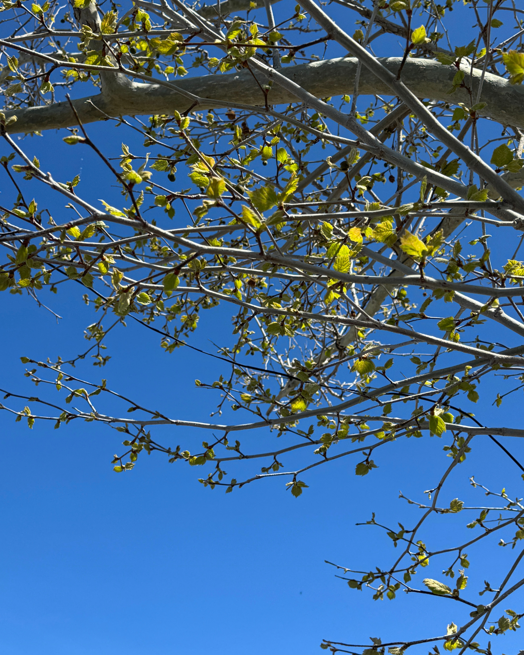 Another photo from one of our walks. The sky was so blue, and the new leaves felt bright and green. I don’t ever remember having such an early spring here in Utah. It felt like a happy and light moment.